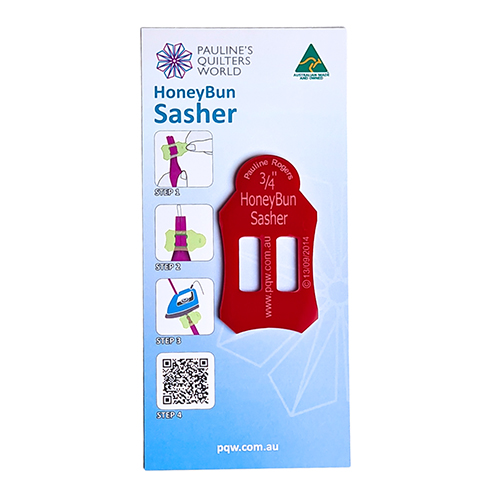 The HoneyBun Sasher can quickly and easily thread HoneyBun (1 1/2? strips) and the batting/wadding together. There’s no need to iron them. Simply feed the layered strips into the Sasher and then feed the folded strips directly to your sewing machine for basting. Printed on the HoneyBun Sasher is the finished size of the HoneyBun strip, providing clear guidance for cutting the fabric strips to twice this size (1 1/2? strip to fold to 3/4? wide). This ensures precision and accuracy in strip preparation, allowing quilters to achieve consistent results in their quilting and sewing projects. The versatility of the HoneyBun Sasher extends to a wide range of creative pursuits. Whether you’re making bags, runners, placemats, bowls, or other fabric-based projects, this tool offers endless possibilities.