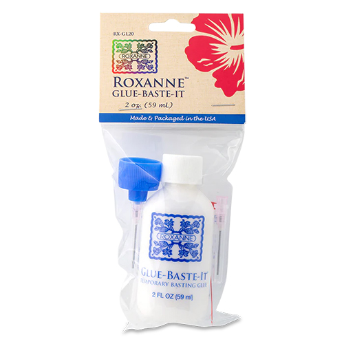 Baste it Glue (2oz. Bottle) a temporary glue for applique, hems, quilt binding, and more. Holds any sewing or craft projects in place without pins or clips. 100% water-soluble, pH neutral, dries clear and flexible, and holds firmly until moistened or washed. Made in the USA