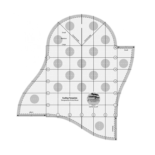 Take your quilt borders to the next level with the Creative Grids Scallop Quilting Template. This versatile tool allows you to create beautiful, even scalloped borders with ease. Featuring three different scallop sizes plus a corner unit, this ruler makes it simple to customise any quilt border – whether you’re working with small, medium, or large designs. The ruler slides easily over the fabric until pressure is applied. Then, our exclusive gripper holds the fabric in place while cutting, eliminating slipping and miss-cuts